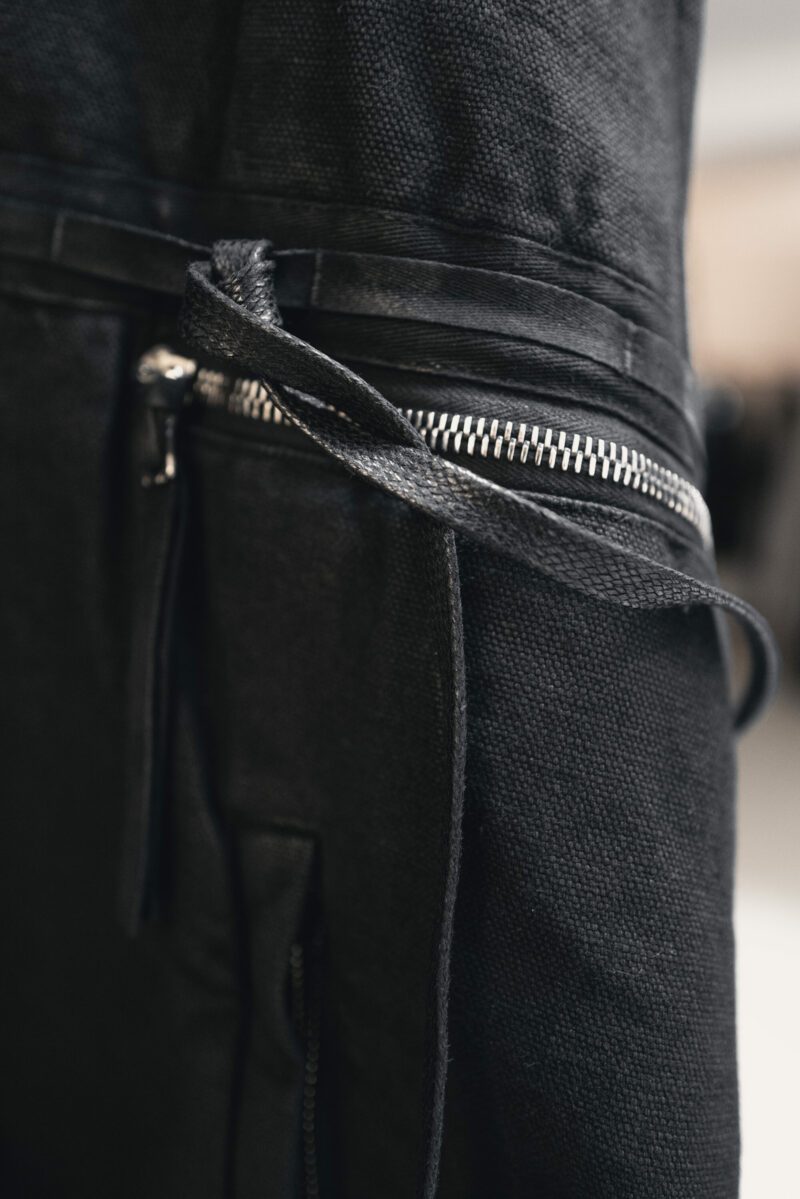 Boris Bidjan Saberi P23 Pants P34 Vinyl Coated waxed closeup