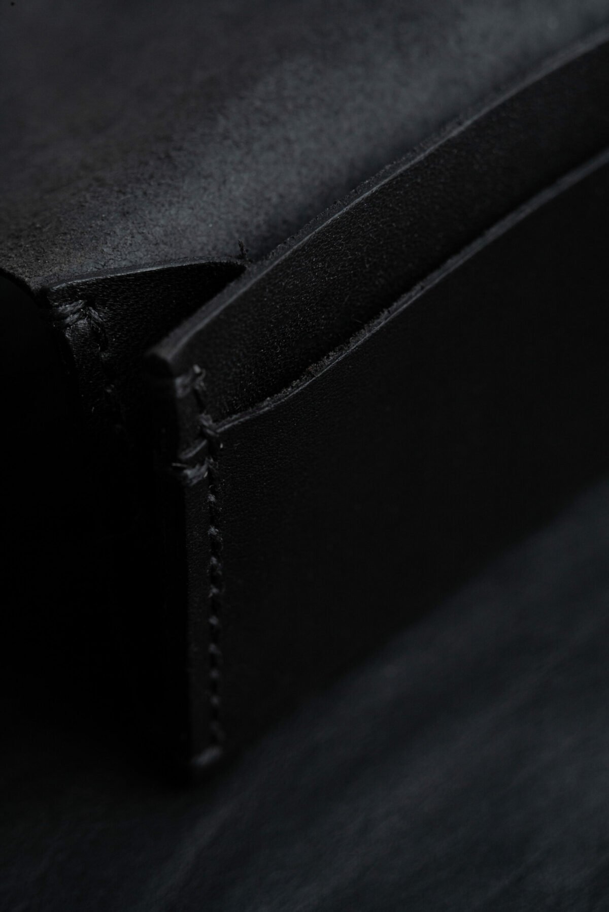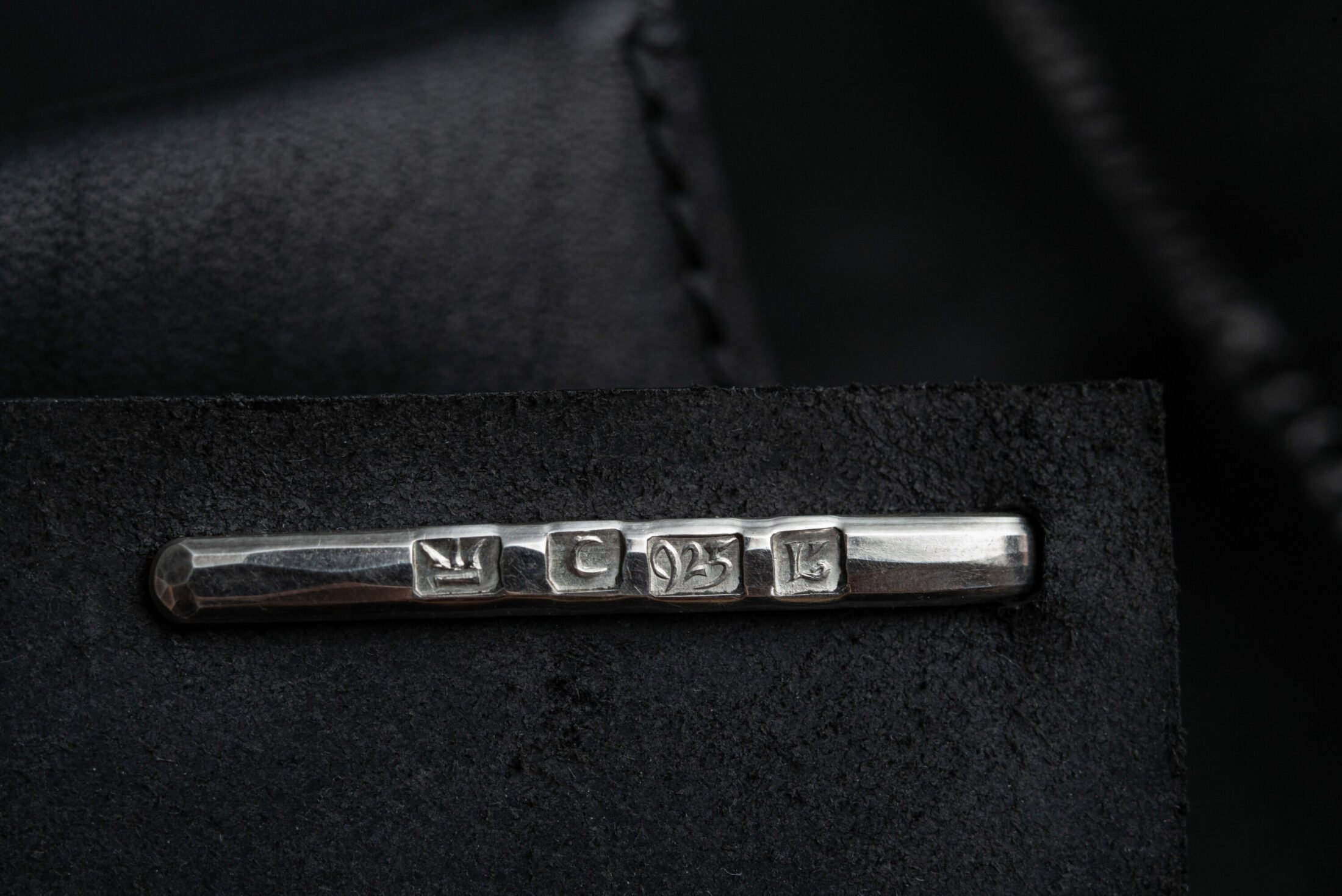 Werkstatt:München uses belt leather which is custom made in a vegetable tanning process. Inside this piece, you will find a card slot and a 925 silver money clip bends around the leather and is forged with a polished silversmith hammer from one piece of silverwire.