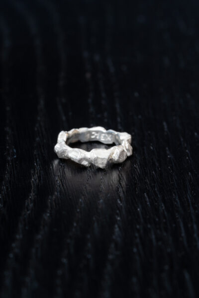 ポストインダストリアルな廃墟と原始的な自然が融合する宇宙で、Gaspard Hexは独自の技法で素材に取り組んでいます。彼の多くの実験的なテクスチャープロセスは自然からアイデアを借用しています。このデザイン手法はデジタル社会への対抗点であり、生命と自然の神秘を再び指導的概念として位置づける方法です。