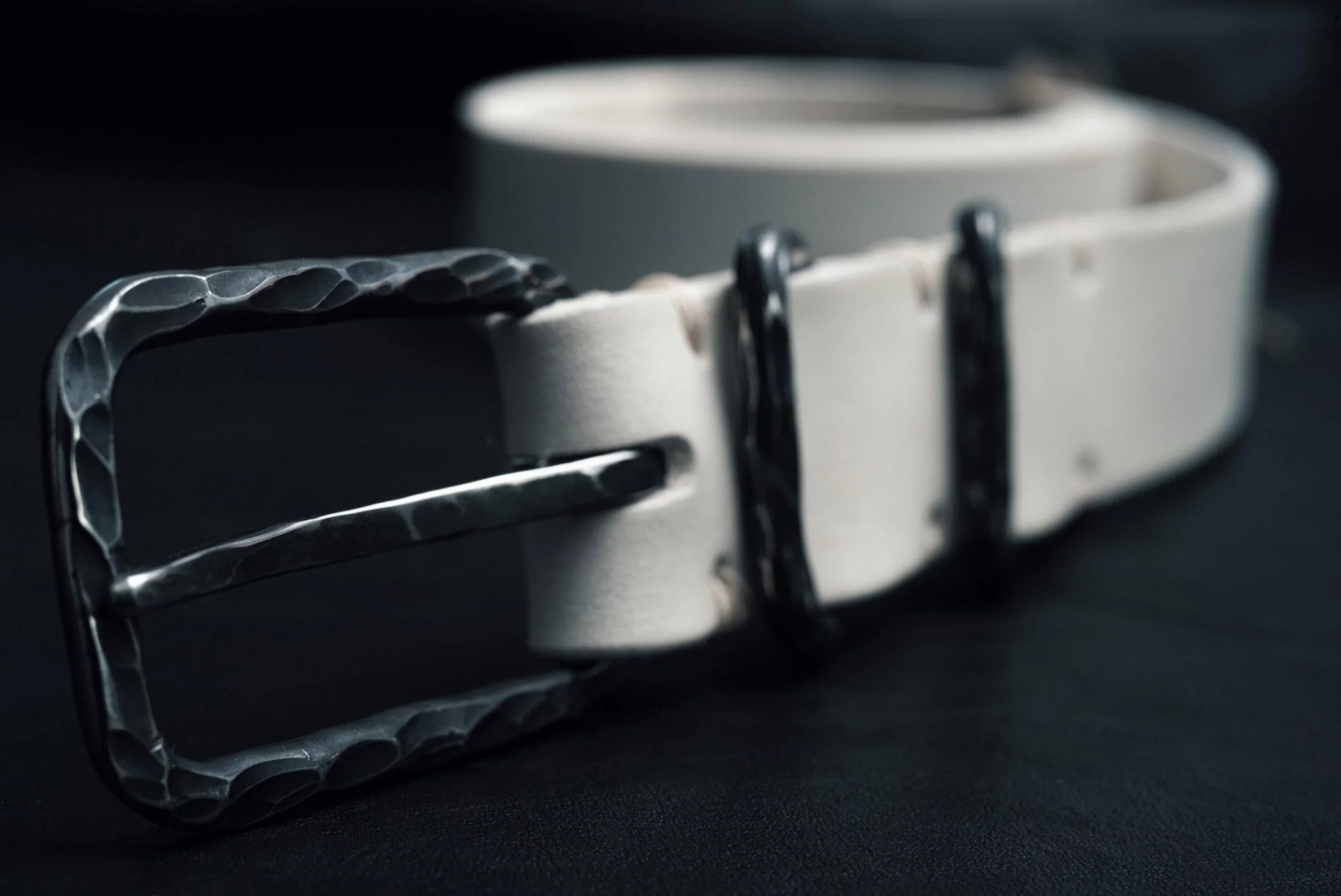 その Gary Girin 「アルビノ」金属フリーの牛革とハンマースチール。スチールの代わりに925銀でも利用可能。フレンチリネンの糸。モスクワで手作り。