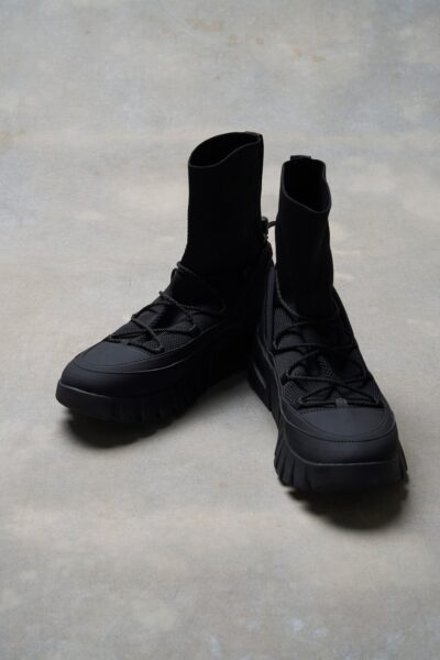 The research of designer Daisuke Nishida starts with the understanding of the natural human body movements. DEVOA constructs of pattern toward movement of skin, muscle, and frame for an action. The human body keeps evolving and degenerating which are one and indivisible as the ages go by.