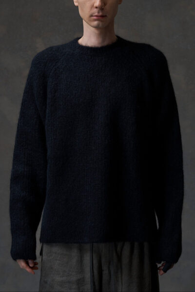 Our two favorite pieces are the virgin wool shirt – a collaboration with the Italian designer Faliero Sarti in Italy – and the durable cargo dropped crotch pants, made of ramie and rayon fabrics.