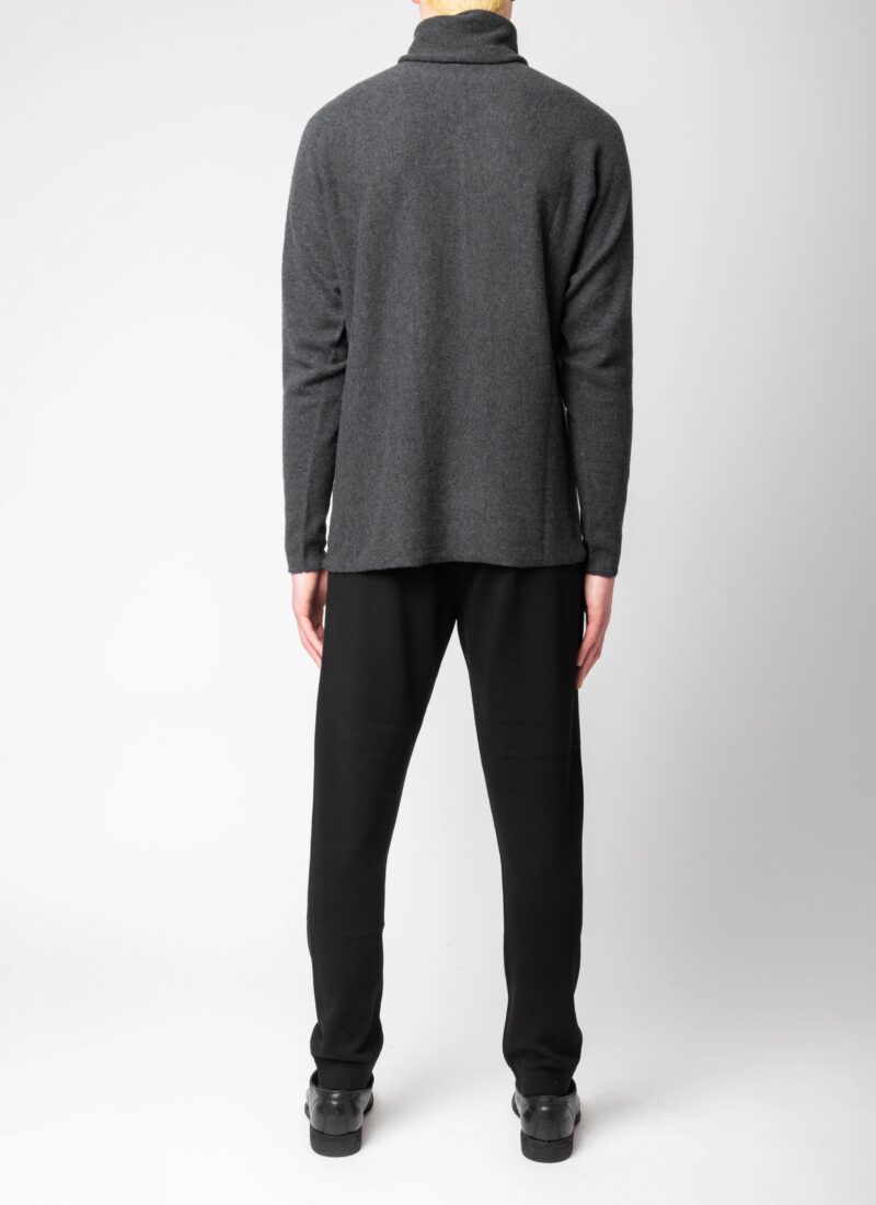 LABEL UNDER CONSTRUCTION Ruched Turtleneck Arched Shoulder Sweater, dark grey, cashmere