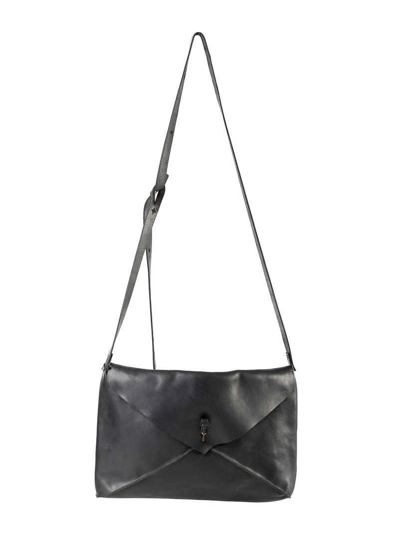 M.A+ by M. Amadei 15″ Vertical Envelope Messenger Bag BE153, black, cow leather