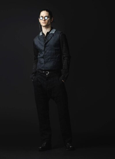 M.A+ by M. Amadei Buttoned Vest L100/K, black dark blue, linen cotton elastan
