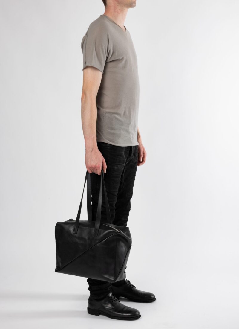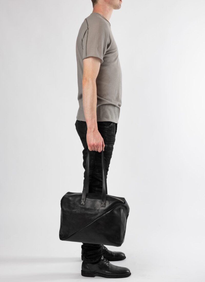 M.A+ by M. Amadei Double Hand Medium Diagonal Bag BQ44, black, horse leather