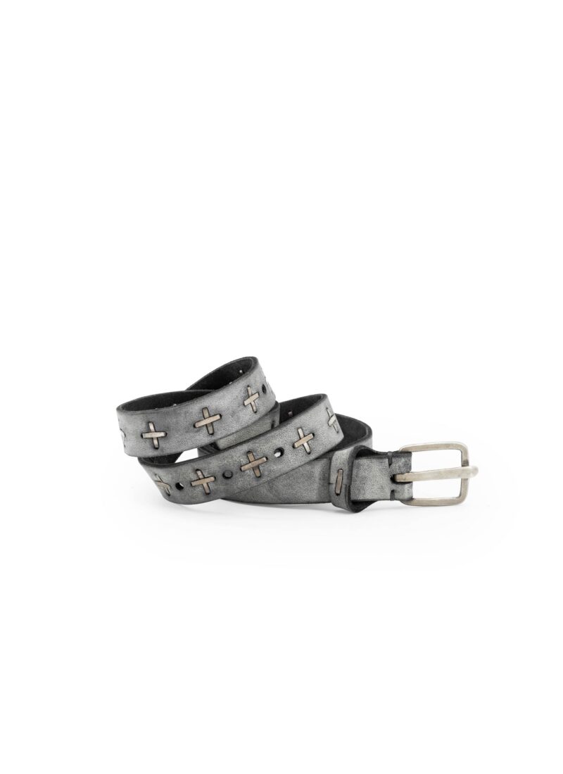 M.A+ by M. Amadei “+” studded Q buckle med belt EQ2C, cow leather with sterling silver, carbon
