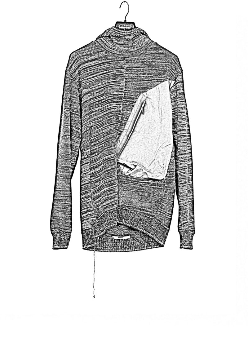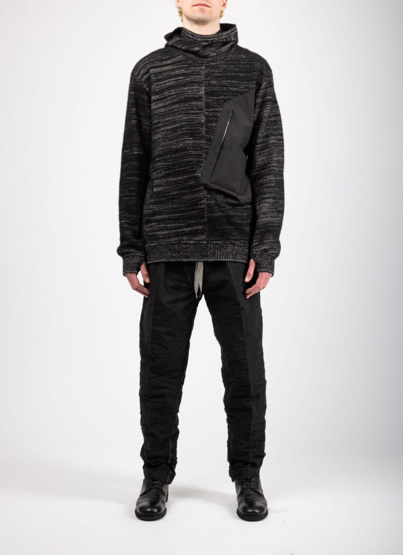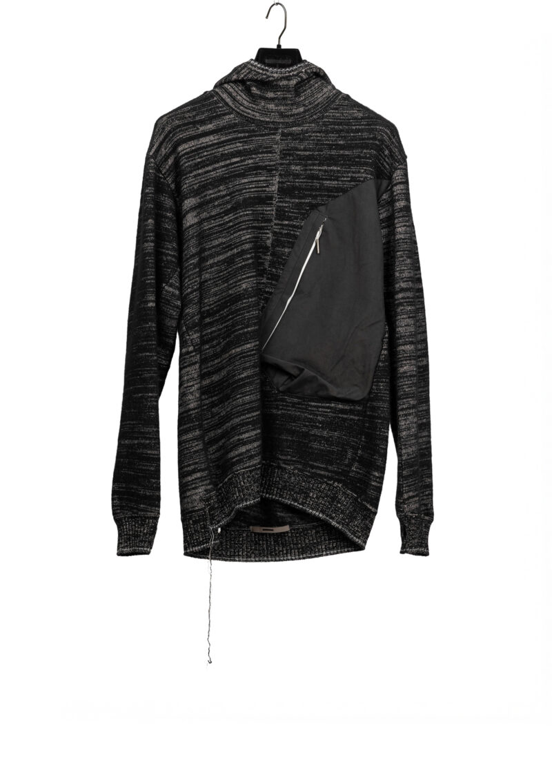 TAICHI MURAKAMI Displacement Hooded Sweater With Zip Pocket, cashmere/paper, black/black